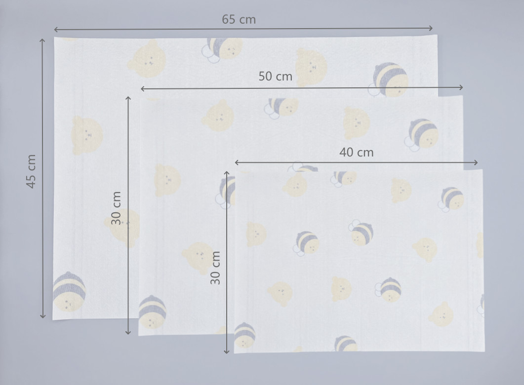 | Dimension: | 30x40cm,30x45cm,40x50cm,40x60cm,45x60cm,45x65cm | Consist Layers: | Non Woven Fiber, Fast Absorb Tissue, Waterproof Backing Film |