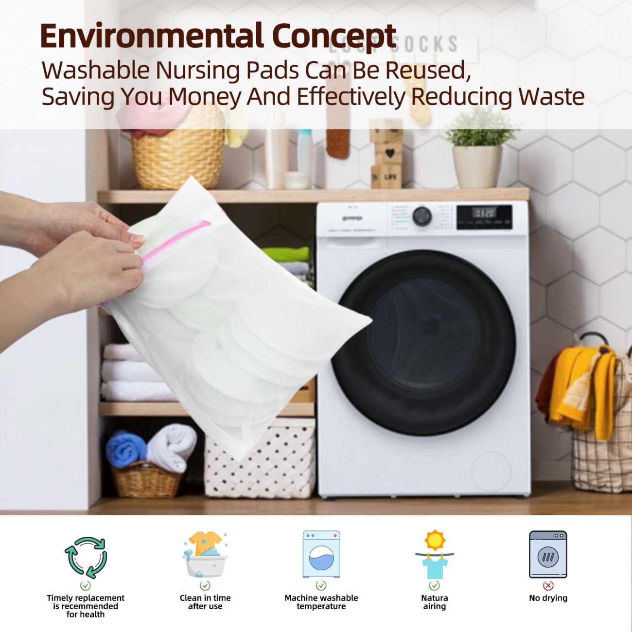 Disposable breast pads contribute to environmental waste. Washable breast pads, on the other hand, can be used repeatedly, helping reduce waste and promoting sustainability. This makes them an eco-friendly choice for mothers who are concerned about their environmental footprint.